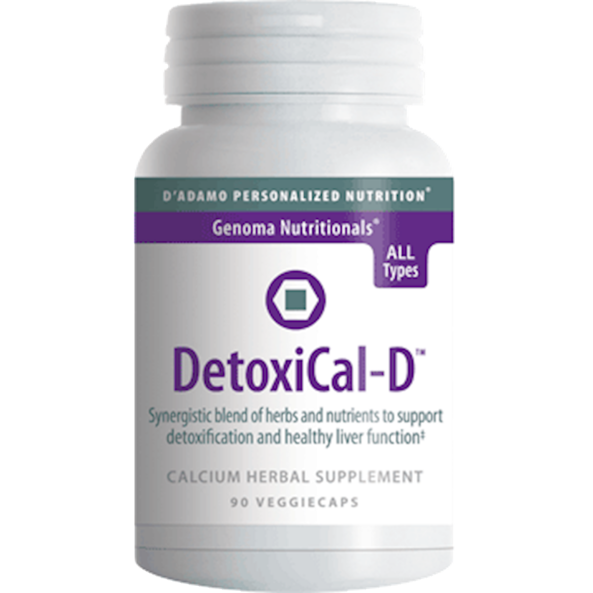 Synergistic blend of herbs and nutrients to support detoxification and healthy liver function.* The body's detoxification systems have a daily demand placed upon them by both external and internal pollutants. Ridding the body of toxins may cause the liver to become overworked resulting in the liver not functioning at its peak efficiency. To promote healthy liver function, Dr. Peter D'Adamo, author of Eat Right 4 Your Type, developed DetoxiCal-D to provide nutrient and herbal support for optimal detoxification process. This dietary supplement blends together two synergistic ingredients: Calcium D-Glucarate (which is a blend of calcium and glucaris acid) and botanical Phyllanthus. Both of these ingredients work in harmony and may support the body's natural detoxification abilities, maintain healthy hormone levels and support liver function.* DetoxiCal-D is suitable for all blood types. It is produced in a GMP (Good Manufacturing Practices) facility.