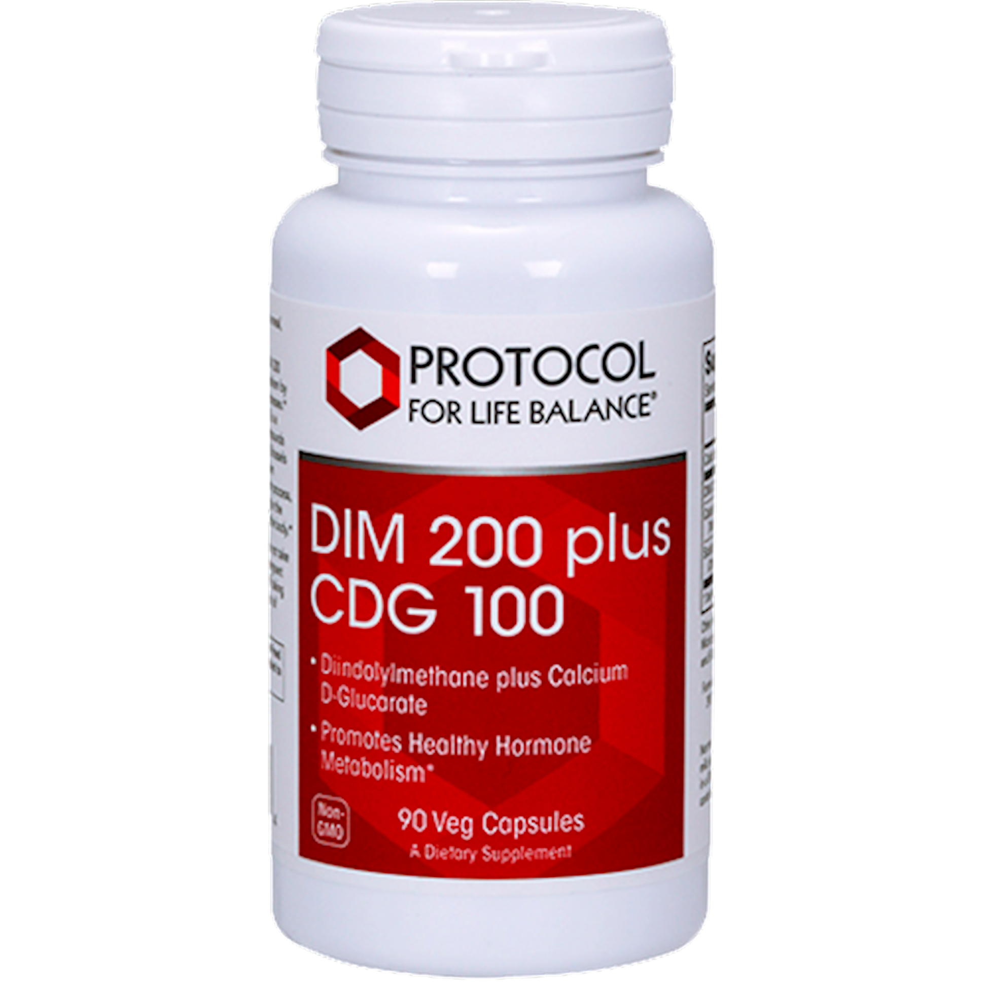 Protocol For Life Balance DIM 200 plus CDG 100 promotes healthy hormone metabolism by supporting your bodys normal detoxification processes.* The featured ingredient, diindolylmethane (DIM), is a phytochemical thats a metabolite of certain compounds found in cruciferous vegetables such as broccoli, Brussels sprouts, and cabbage. Weve also included calcium D-glucarate (CDG) to support the glucuronidation process, an important mechanism of detoxification, aiding in the elimination of certain environmental toxins from the body.* Diindolylmethane plus Calcium D-Glucarate Promotes Healthy Hormone Metabolism*