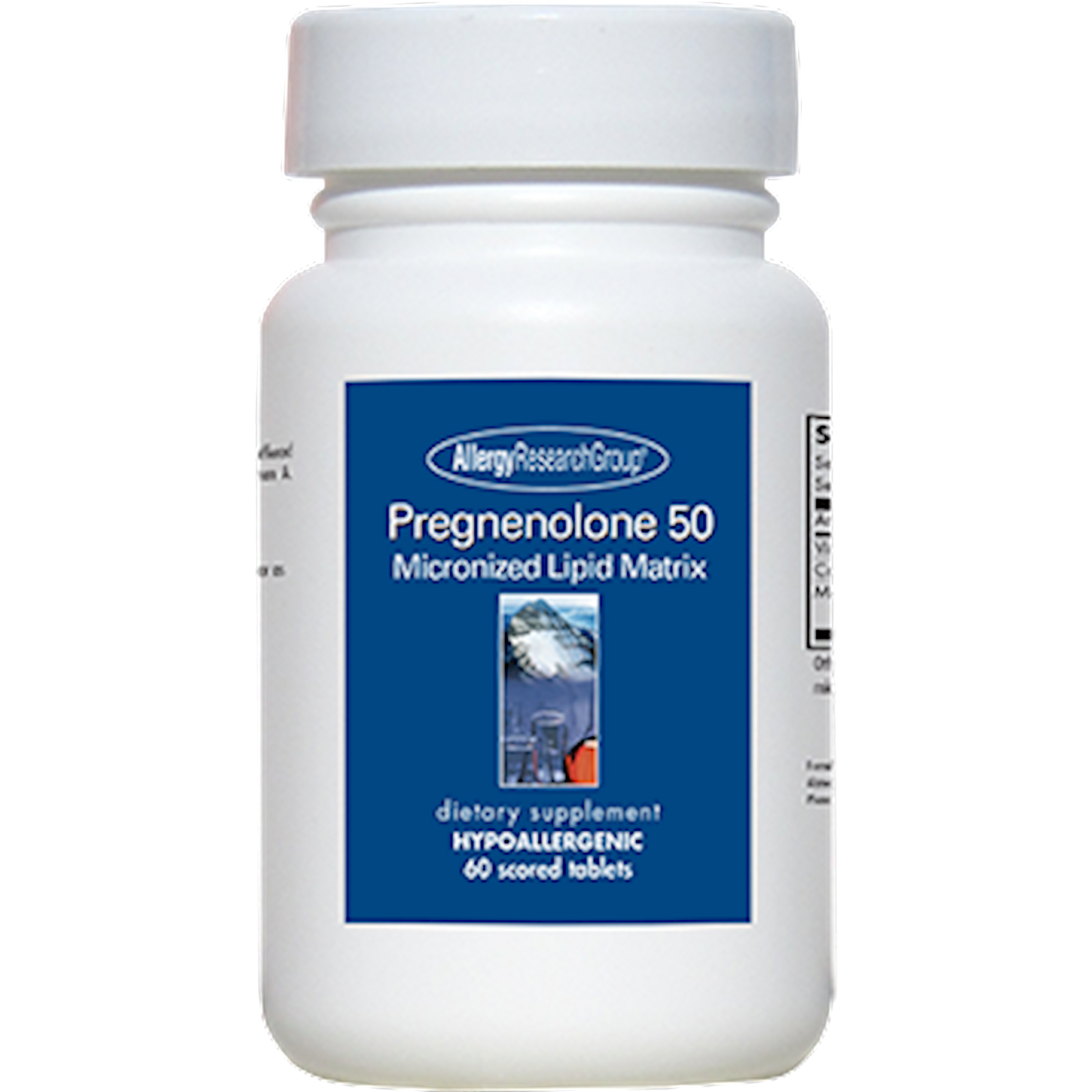 Serving Size: 1 Tablet Servings Per Container: 60 Disclaimer Amount Per Serving Pregnenolone 50 mg Other ingredients: Micosolle, microcrystalline cellulose, vegetable oil, vegetable wax, Cab-o-sil, magnesium stearate, Vitamin E