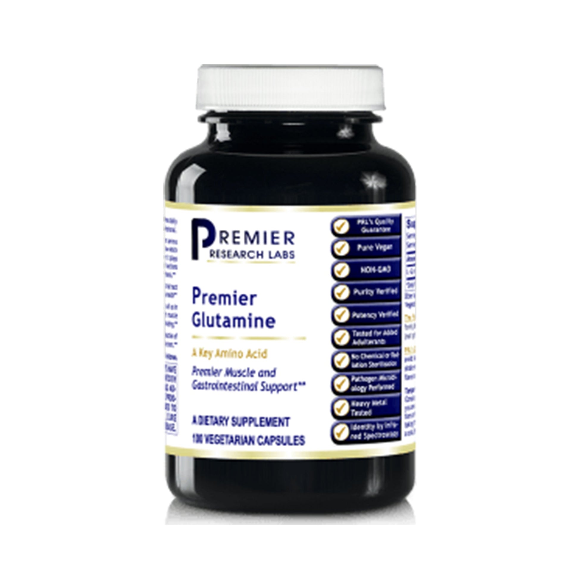 Premier Glutamine delivers L-glutamine (free form) that is derived from beneficial bacteria (not synthetically made).