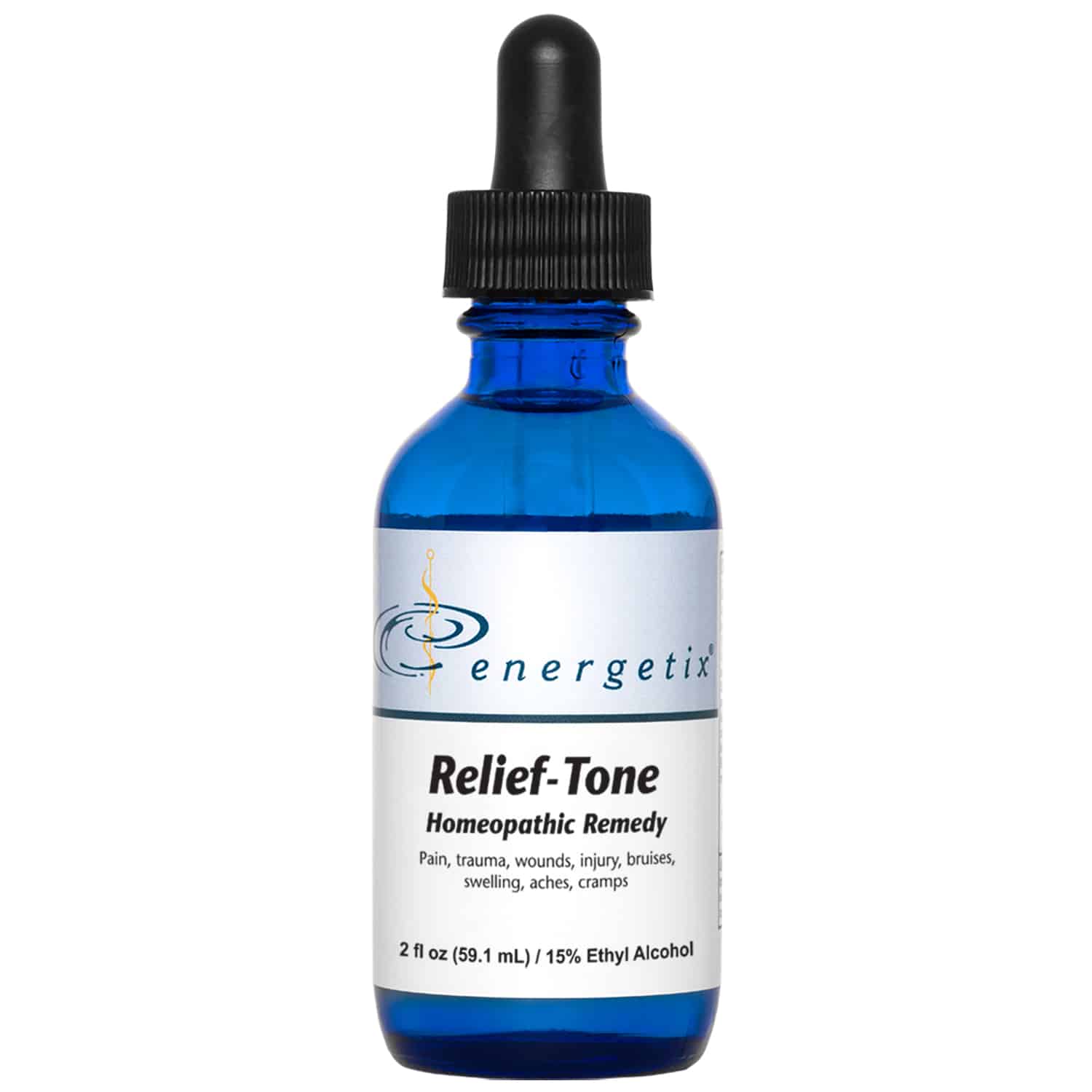 Relief-Tone is a broad-use homeopathic combination formula for pain. It covers the symptoms associated with the effects of trauma such as wounds, bruises, sprains, fractures, and other injuries. It is also useful for pain arising from dental work, headaches, muscle aches, swelling, and muscle cramps. For symptoms such as pain, trauma, wounds, injury, bruises, swelling, aches, cramps.