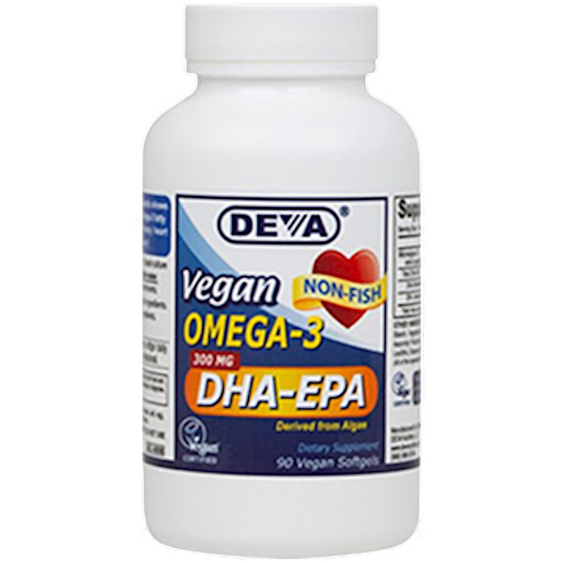 Deva is proud to offer its 300 mg potency Omega-3 product that contains both DHA and EPA derived from a completely vegetarian source (i.e., Schizochytrium sp microalgae). Algal Omega-3 oil has been commercially available for a while but it did not contain meaningful amounts of EPA. This new product contains both DHA and EPA from microalgae that is grown in a controlled land facility, outside of the ocean. From start to finish, it is produced in an FDA-registered facility, under current Good Manufacturing Practice (cGMP) regulations with controls in place to ensure the highest quality product. Deva DHA & EPA oil is encapsulated in non-animal vegan softgels. No gelatin or other animal-derived ingredients. Deva Omega-3 DHA & EPA is 100% vegan, vegetarian and is registered by the Vegan Society, the non-profit organization that actually invented the word "vegan".